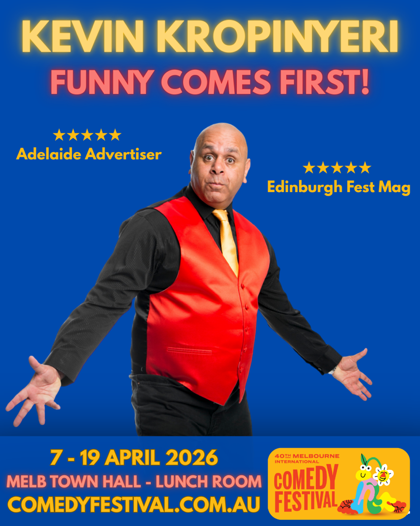 Tickets: https://adelaidefringe.com.au/fringetix/kevin-kropinyeri-funny-comes-first-af2026